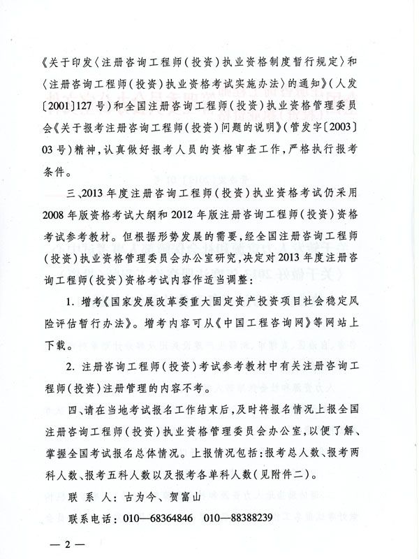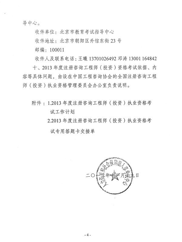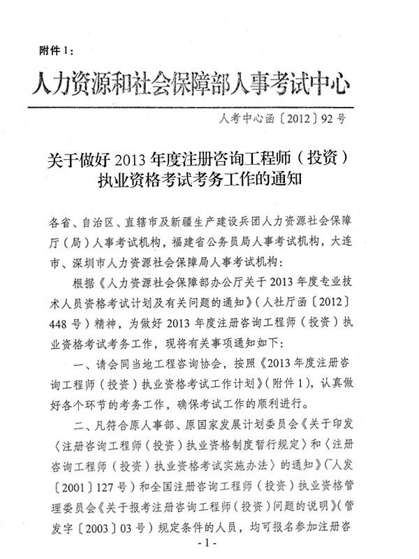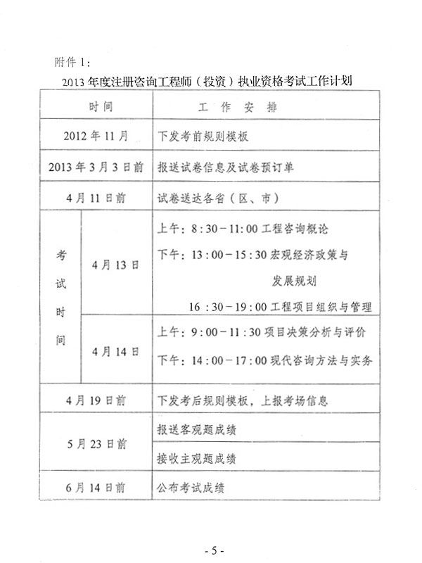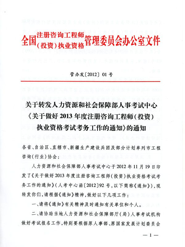 关于做好2013年度注册咨询工程师(投资)职业资格考试考务工作的通知